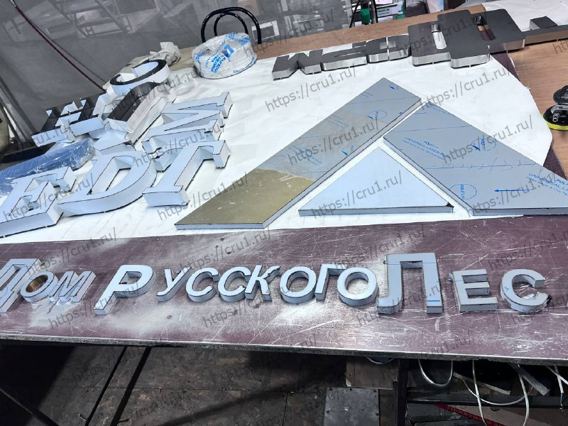 Изготовление плоских букв для «Дома Русского Леса» стало вызовом, который мы приняли с профессиональным азартом. Каждая буква — это не просто вырезанный контур. Это многослойный процесс: