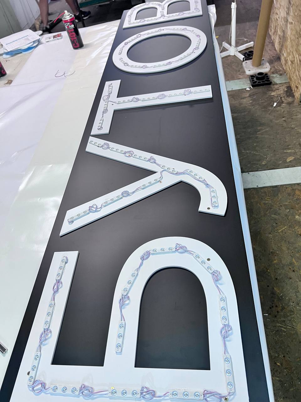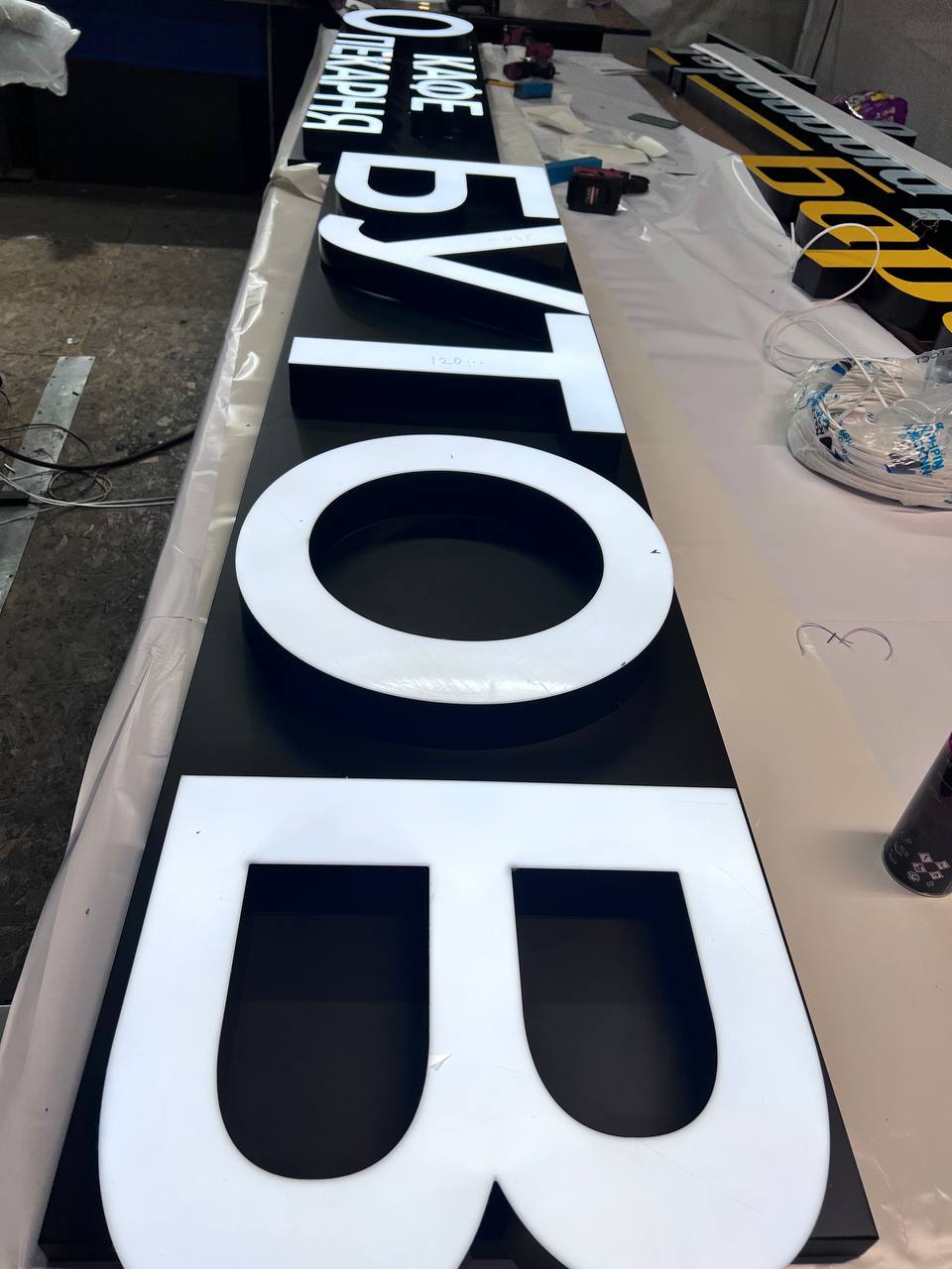 Подсвеченные буквы придают вывеске современный и стильный вид. Они могут быть выполнены в различных цветах и формах, что позволяет адаптировать их под любой дизайн. В сочетании с подходящей подложкой, например, из акрила или металла, они создают эффектный контраст, который подчеркивает индивидуальность вашего бренда.