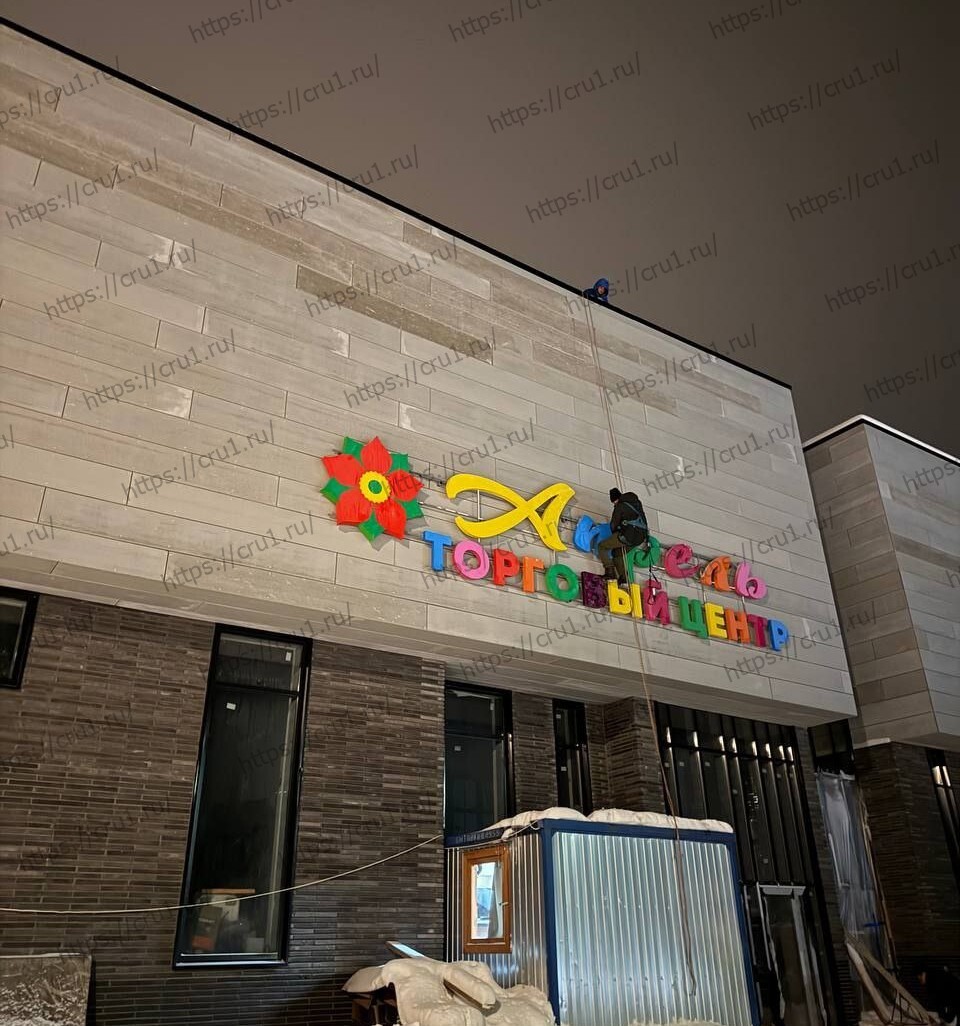 Особое внимание уделили логотипу: его борт изготовили из ПВХ толщиной 3 мм с увеличенной глубиной 100 мм для создания эффекта парения над фасадом, а задник с отбортовкой обеспечил надежную фиксацию и эстетичный внешний вид со всех ракурсов. Монтаж провели с ювелирной точностью — каждая буква закреплена на специальных кронштейнах, выдерживающих ветровые нагрузки до 25 м/с.