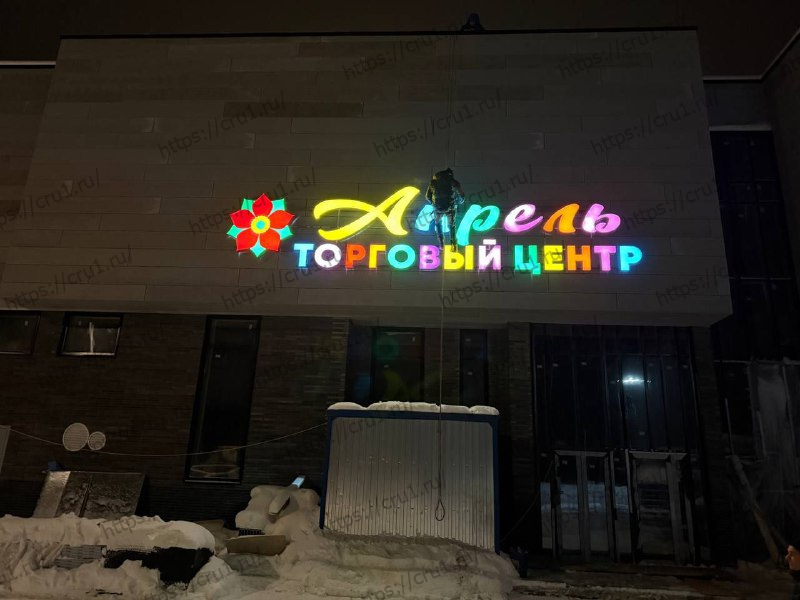 Представьте торговый центр, расположенный на оживленной московской магистрали. Днем он привлекает внимание архитектурой, но ночью рискует раствориться в городском потоке. Именно такая задача стояла перед нами: создать презентабельную и долговечную вывеску для ТЦ «Апрель», которая бы не просто указывала название, а подчеркивала надежность бренда, его современность и гостеприимство. Клиент хотел не просто буквы — он мечтал о символе, который станет ориентиром для тысяч посетителей.